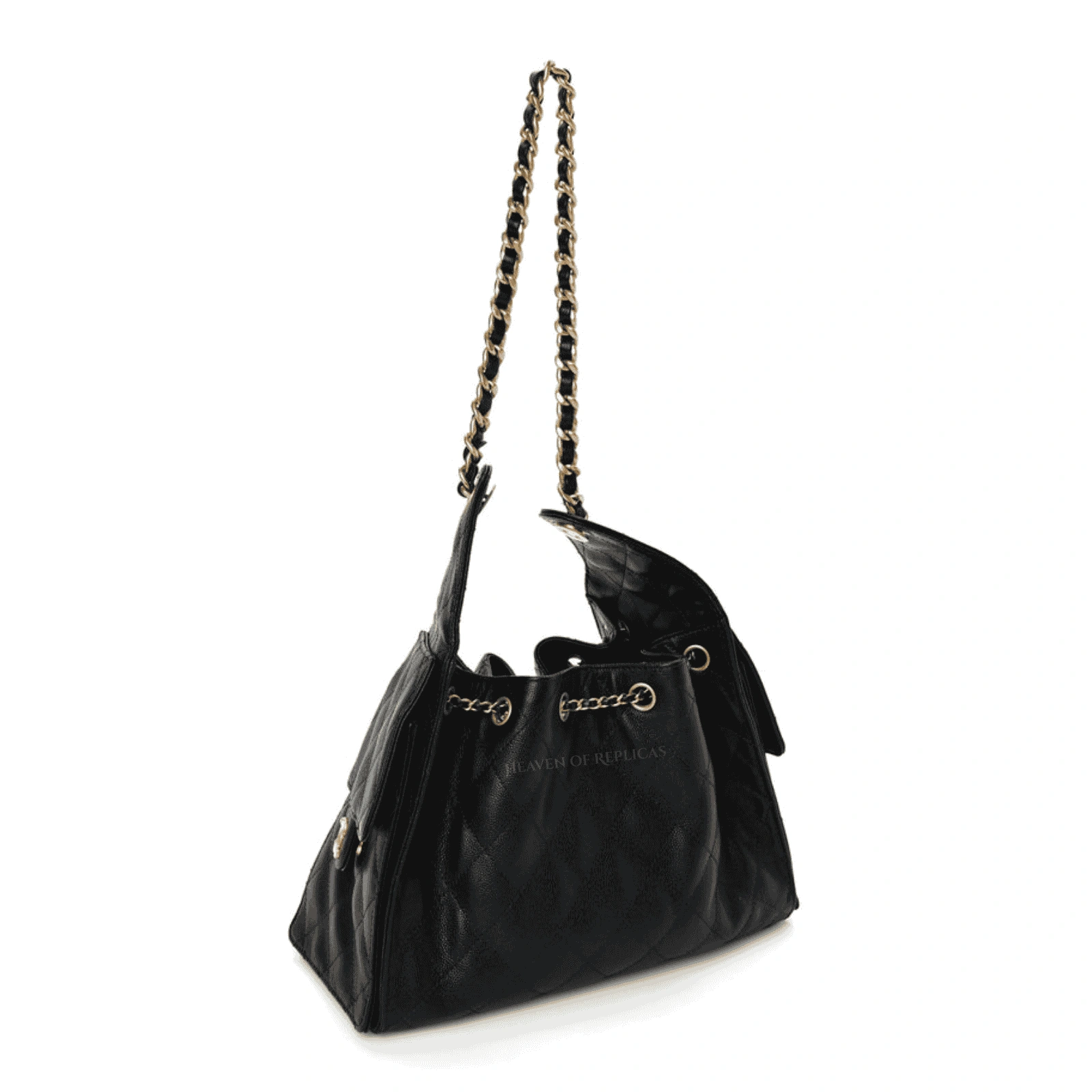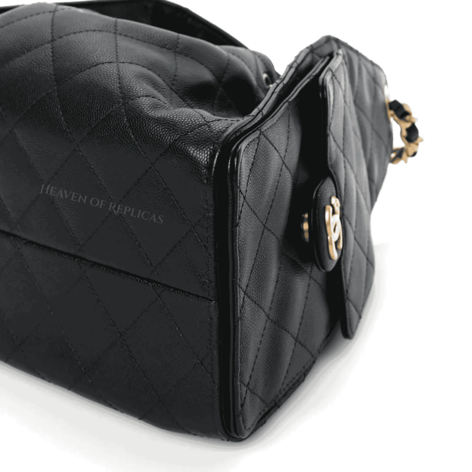 The Chanel 25 Small Handbag Replica showcases a timeless quilted design inspired by the iconic luxury silhouette. Crafted from textured caviar-style calfskin leather in classic black, this designer-inspired knockoff Chanel 25 bag blends elegance with everyday functionality.