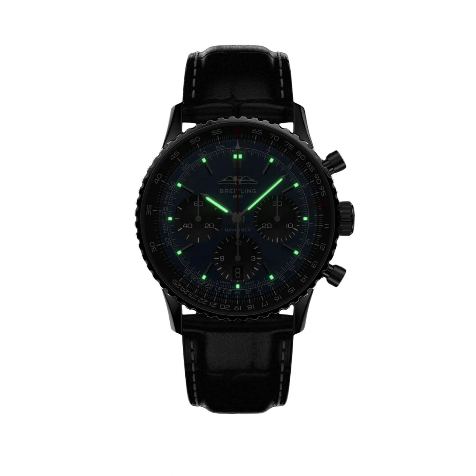 Breitling’s iconic pilot’s chronograph – for the journey. In 1952, Willy Breitling developed a wrist-worn chronograph with a circular slide rule that would allow pilots to perform all necessary flight calculations. Two years later, the Aircraft Owners and Pilots Association (AOPA) announced the design as its official timepiece. The “navigation timer” – or Navitimer – was born. The AOPA was (and remains) the largest pilots’ club in the world, counting nearly every US aviator among its ranks. As the defacto pilot’s watch throughout the glory days of civil aviation, the Navitimer was worn by airline captains and aircraft enthusiasts. It even made its way into space on the wrist of astronaut Scott Carpenter in 1962. And it wasn’t only pilots drawn to the watch’s irrepressible aesthetic. Celebrities of the day such as Miles Davis and Serge Gainsbourg were devotees, proving that the Navitimer had style as well as function. There have been many iterations of Breitling’s icon since its debut 70 years ago, but this new Navitimer captures its most classic features, while enhancing them with modern refinements. A flattened slide rule and a domed crystal create the illusion of a sleeker profile. Alternating polished and brushed metal elements give a lustrous, yet understated finish. Most notably, new colors in shades of blue, green and copper, define the updated dial options. And if there is one update sure to spark nostalgia, it’s the return of the AOPA wings to their original position at 12 o’clock. For 70 years, Breitling’s original pilot’s watch has been beloved by aviators and tastemakers in equal measure. Worn by astronauts in space and the biggest stars on earth, it is Breitling’s most iconic timepiece and one of the most recognizable watches of all time.