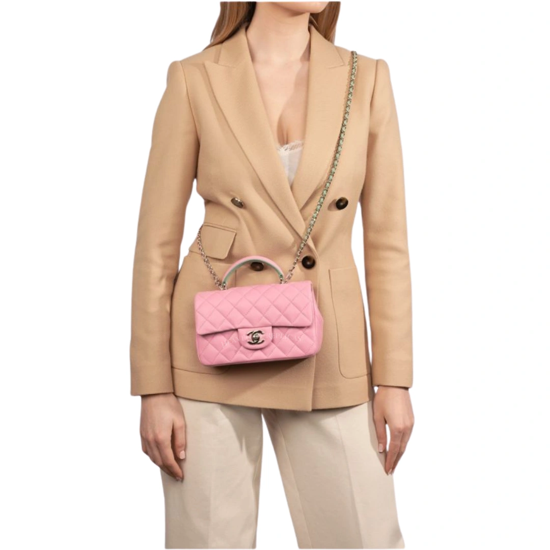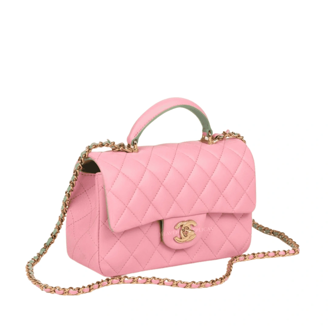 Pink & Green Quilted Lambskin Rectangular Mini Flap Bag with Top Handle – CHN-009