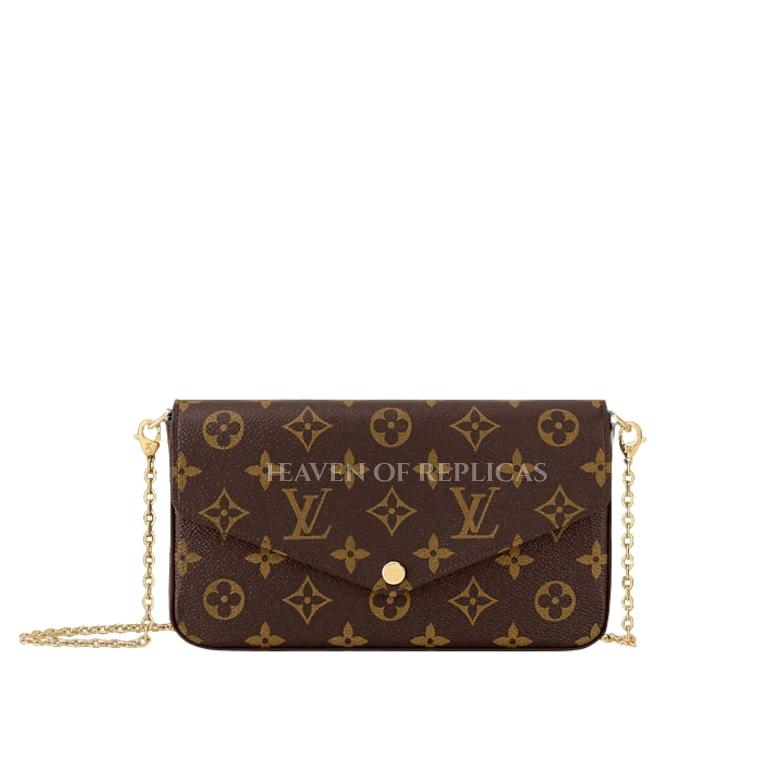 The versatile Pochette Félicie flap pouch is fashioned from Monogram canvas and lined in fuchsia microfiber. Inside there are two removable pockets: a zipped pocket and a flat pocket with eight card slots. The removable gold-color metallic chain enables shoulder and cross-body carry. The Félicie closes with a press-stud.